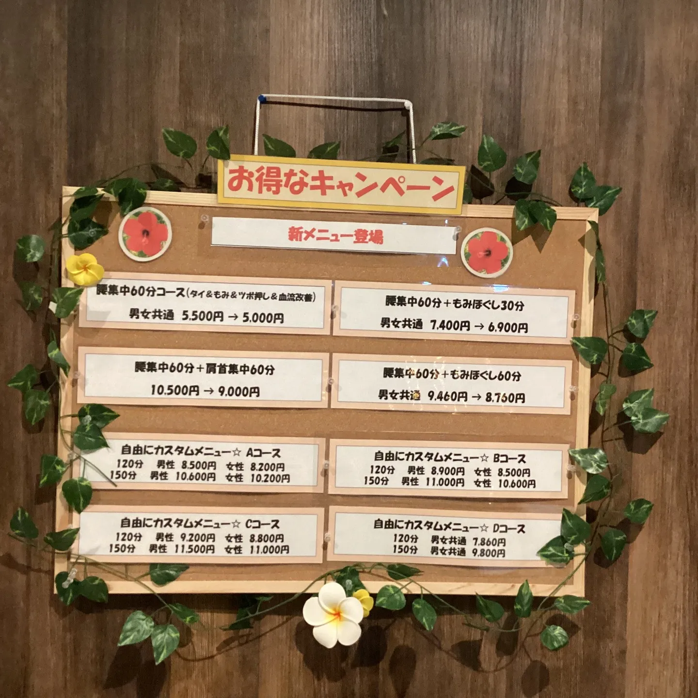 🌺腰集中60分コース 5,500円 → 5,000円