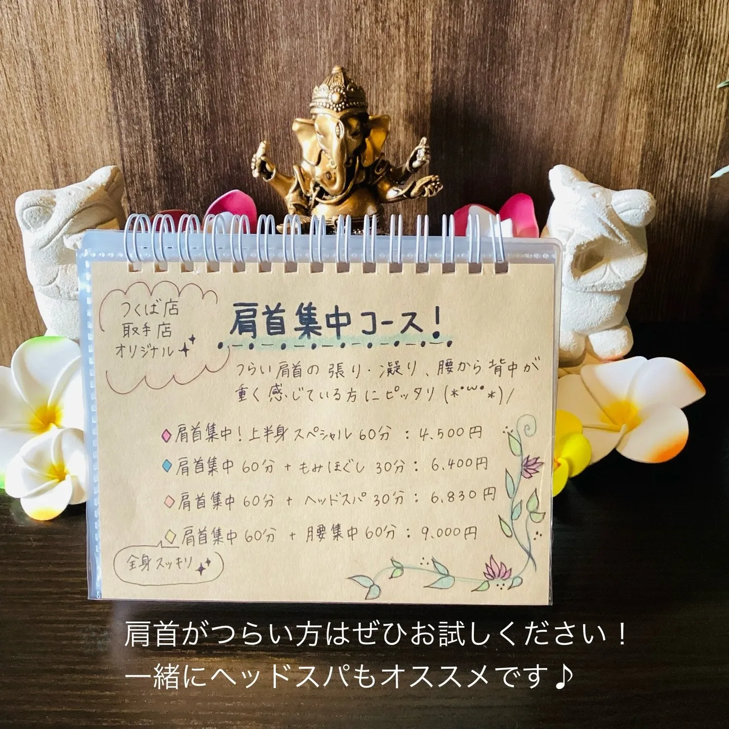 🌺腰集中60分+肩首集中60分 10,500円 → 9,000円