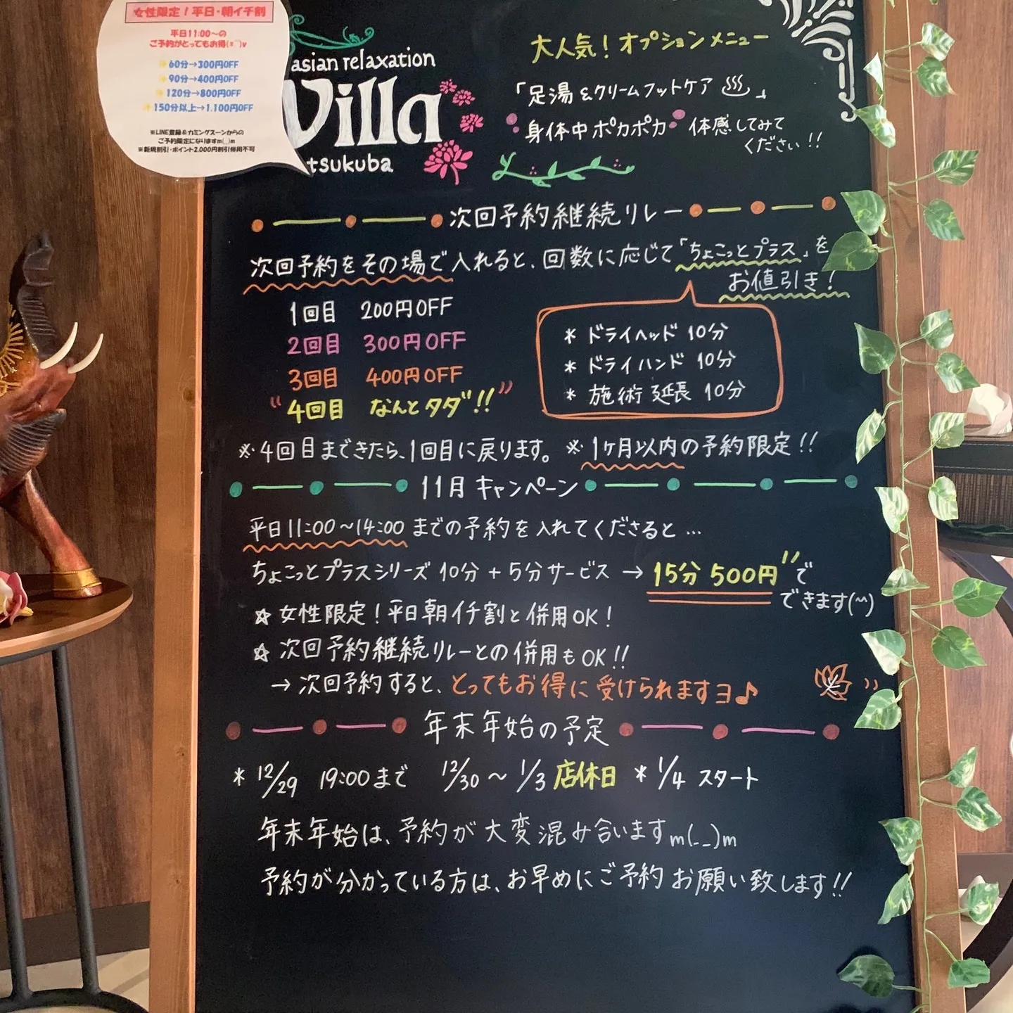 ◆villaつくば店マッサージメニュー◆