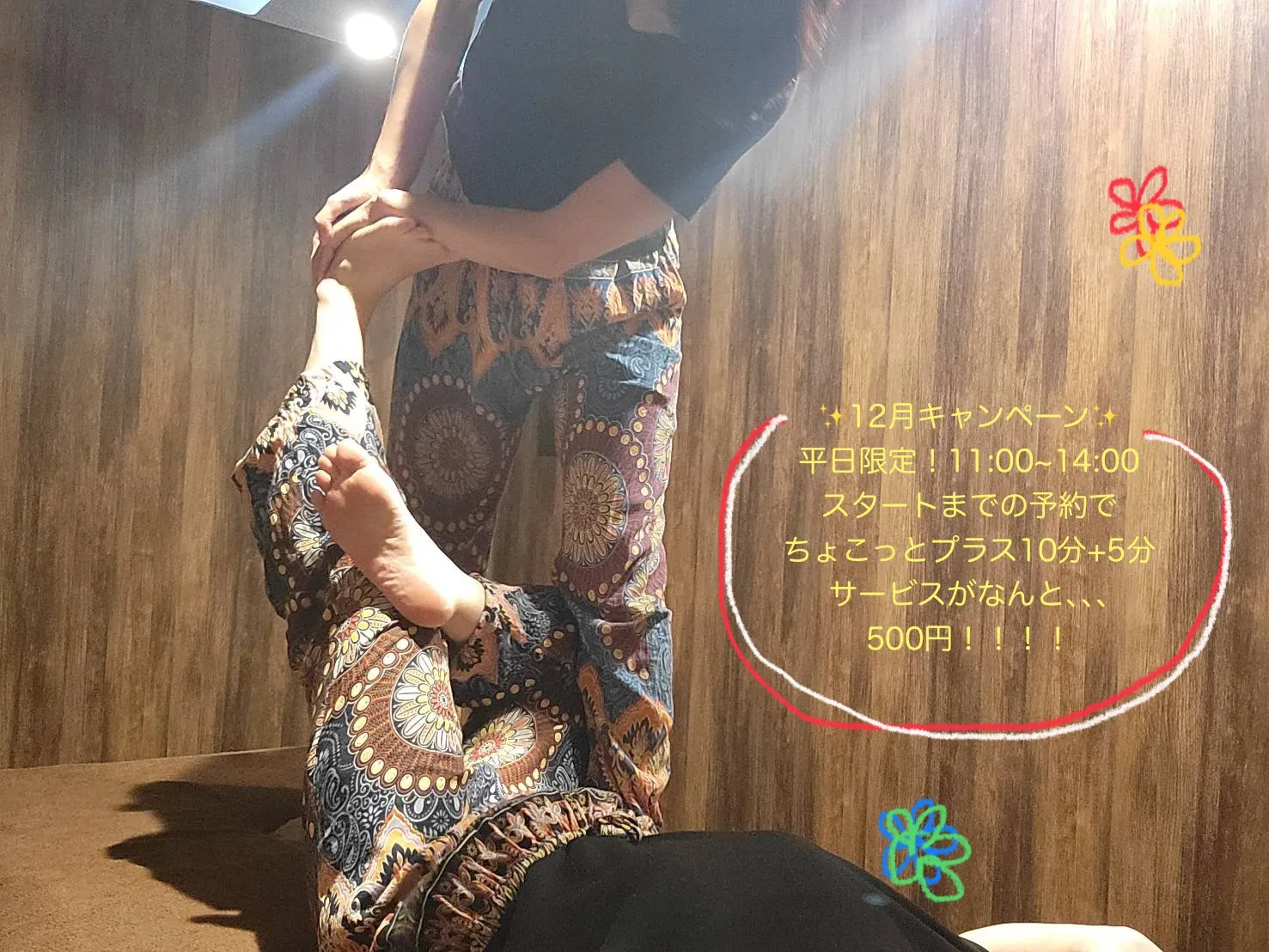 もみほぐしにタイ古式とツボ押しをミックスした短時間での集中メニューになってます🌟